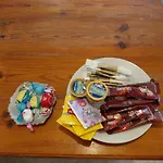 Verschillende eetgelegenheden omvatten Catherinettes Photo Gallery Cafe met menu's van Griekse maaltijden, op een korte afstand van het pand in Sými.
